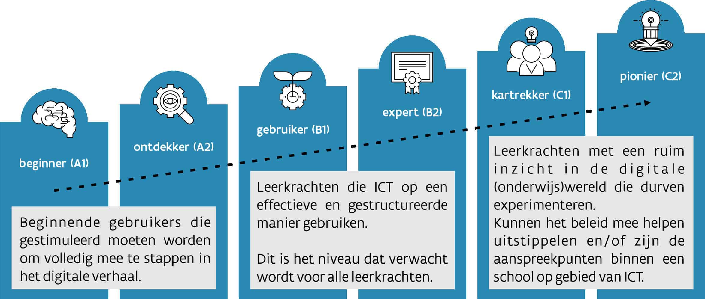Er zitten vast en zeker ook kartrekkers (C1) en pioniers (C2) bij, voor deze kan het een handig platform zijn om -extra- in te zetten bij het uitstippelen van het beleid van de school op vlak van ICT.